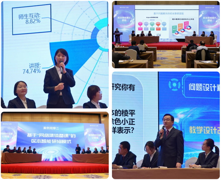 徐州市礦山路小學和徐州市新教育學校分別作了《基于問題解決的6sigma校本智能研修模式》、《基于新教育理念的“重構式”校本智能研修模式》兩個校本智能精準研修案例展示,呈現了新教育理念與智能研修融合,共同促進研修活動進階和質變的校本研修模式創(chuàng)新。