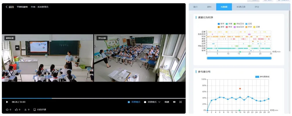 通過(guò)不同維度的數(shù)據(jù)分析,老師可以深度開(kāi)展課堂教學(xué)的精準(zhǔn)問(wèn)題診斷,例如:可以準(zhǔn)確了解課堂授課類型;可以通過(guò)學(xué)生的學(xué)情曲線精準(zhǔn)診斷課堂環(huán)節(jié)的執(zhí)行效果;通過(guò)課堂教學(xué)行為時(shí)序圖,點(diǎn)擊時(shí)序節(jié)點(diǎn)定位堂視頻以“回顧課堂實(shí)錄+智能分析”的方式開(kāi)展有效教學(xué)反思等等。